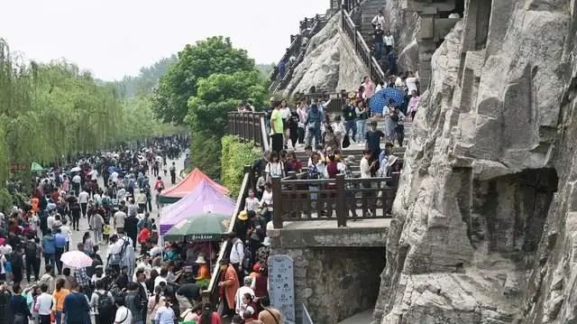 相關數(shù)據(jù)顯示,“五一”期間,洛陽古城特色文化街區(qū)接待游客100余萬人次,白馬寺、隋唐洛陽城等景區(qū)游客達到歷史峰值,龍門石窟更是躋身“五一”期間全國十大熱門景區(qū)。