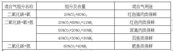 以下是肉類常用混合氣: